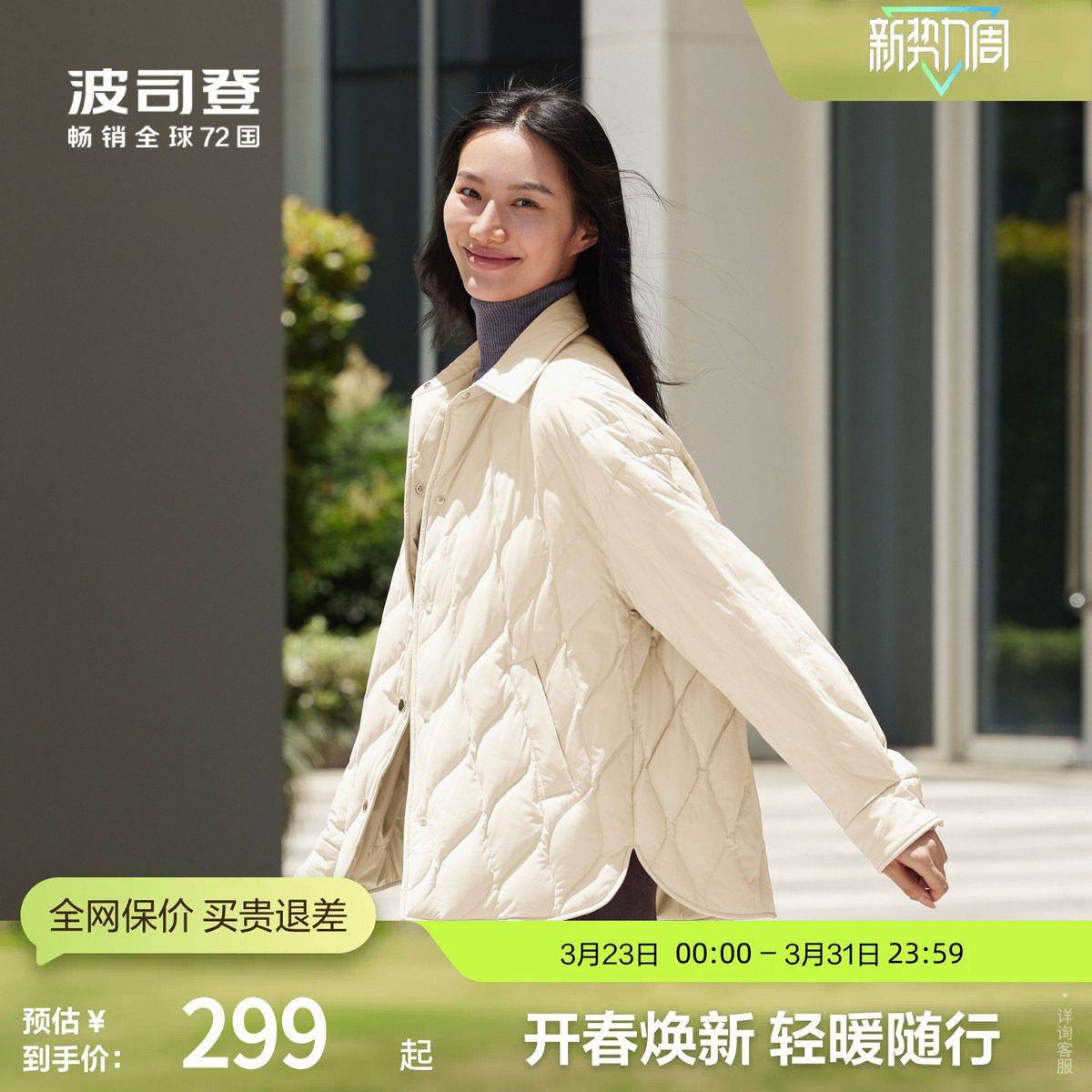波司登奥莱秋季女潮流时尚轻暖显白显瘦百搭衬衫领短款轻薄羽绒服