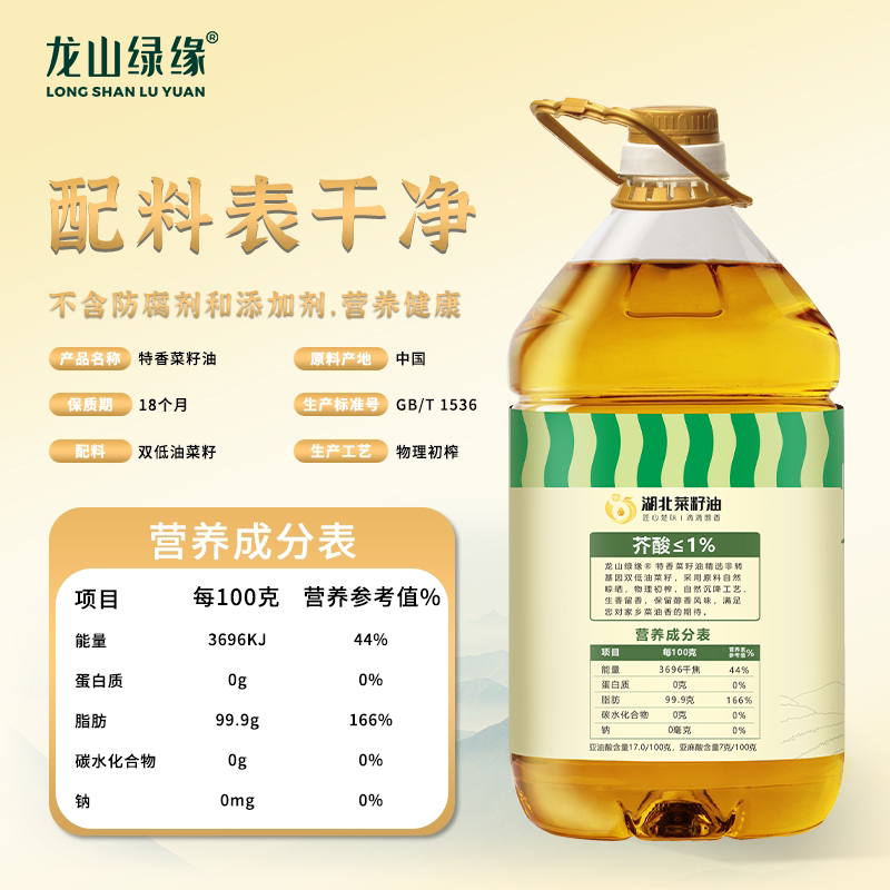 荆楚粮油龙山绿缘【5L特香菜籽油】低芥酸食用油非转基因低温压榨